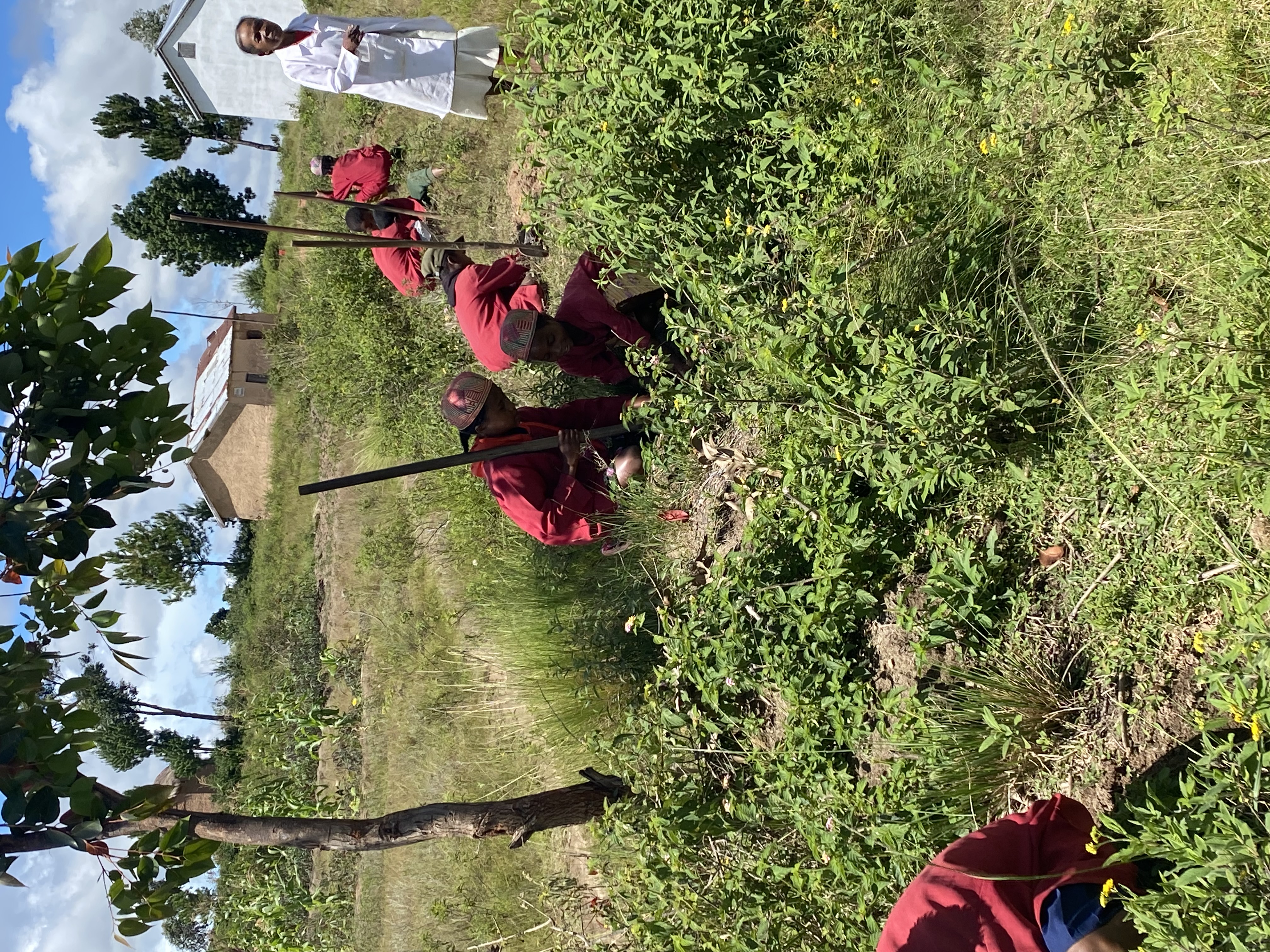 La plantation à Ambaladingana s’est déroulée dans un esprit collectif : les parents ont préparé le terrain, chaque enfant a déposé symboliquement une pelletée de sable, et les enseignantes ont finalisé la mise en terre.