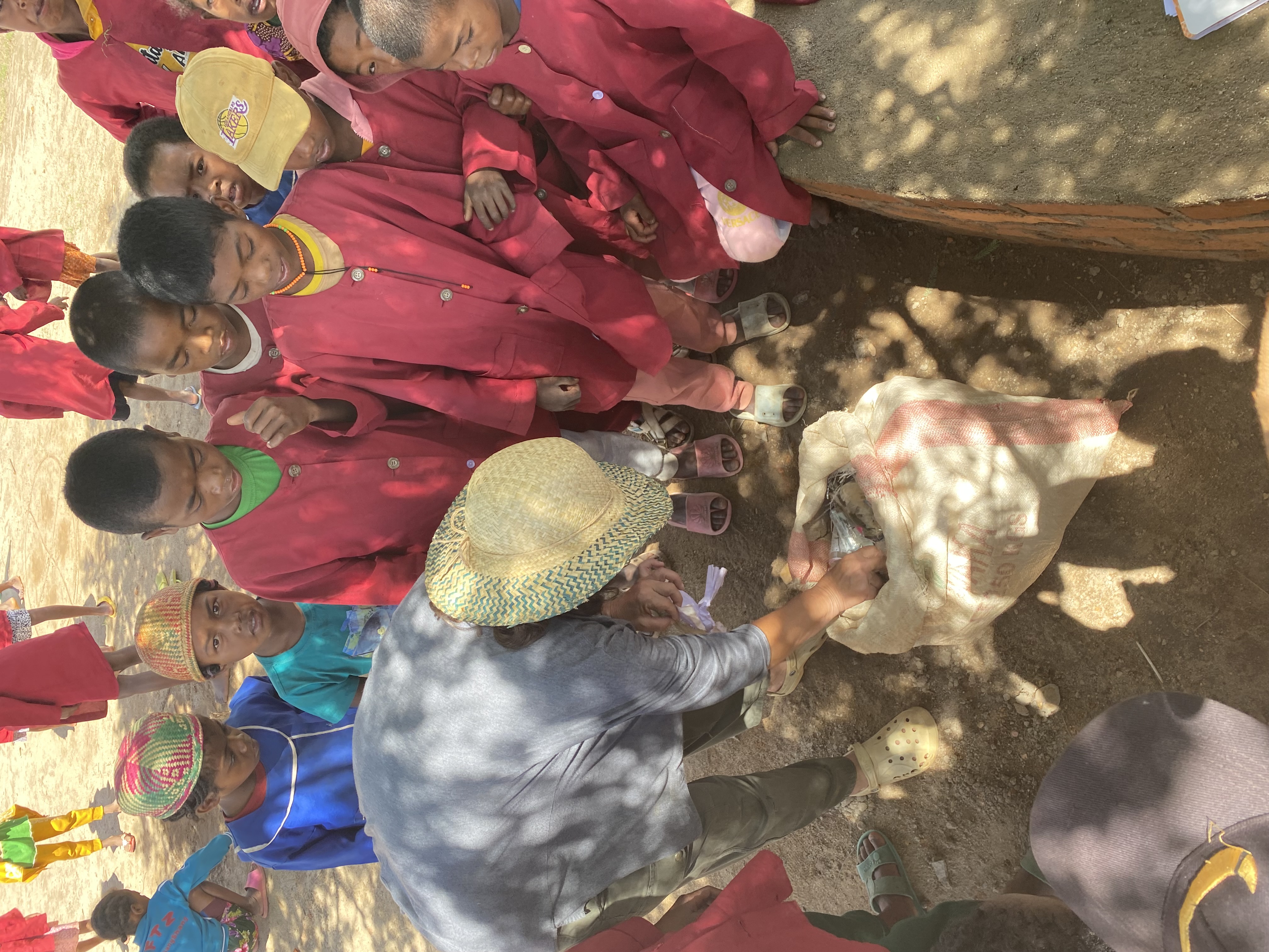 Cette action a été l’occasion d’expliquer aux élèves pourquoi il est important de ne pas jeter les déchets par terre. Dans le village, ils sont souvent déposés dans des trous à ciel ouvert et, au moindre vent, les papiers et plastiques se dispersent dans la nature.